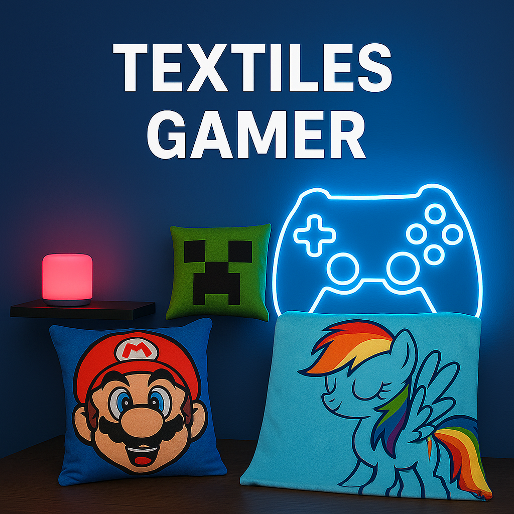 Aquí encontrarás lámparas LED que crean la iluminación perfecta para tus sesiones nocturnas, posters y cuadros inspirados en videojuegos míticos, anime y cultura geek para dar vida a tus paredes, así como figuras coleccionables y Funko Pop ideales para estanterías o vitrinas. También incluimos accesorios prácticos que suman decoración sin perder utilidad, como alfombrillas XXL con diseños espectaculares, soportes para mandos o auriculares, posavasos con estilo friki y organizadores para mantener tu escritorio impecable sin perder personalidad.