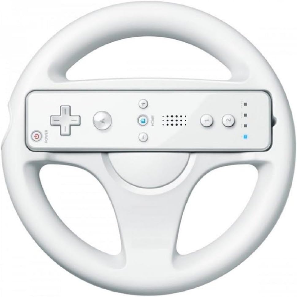 El Wii Wheel es un accesorio sencillo pero genial: un soporte de plástico donde se encaja el Wiimote para convertirlo en un volante. Aunque es opcional, la experiencia de juegos de carreras como Mario Kart Wii mejora muchísimo, ya que permite girar de forma intuitiva.